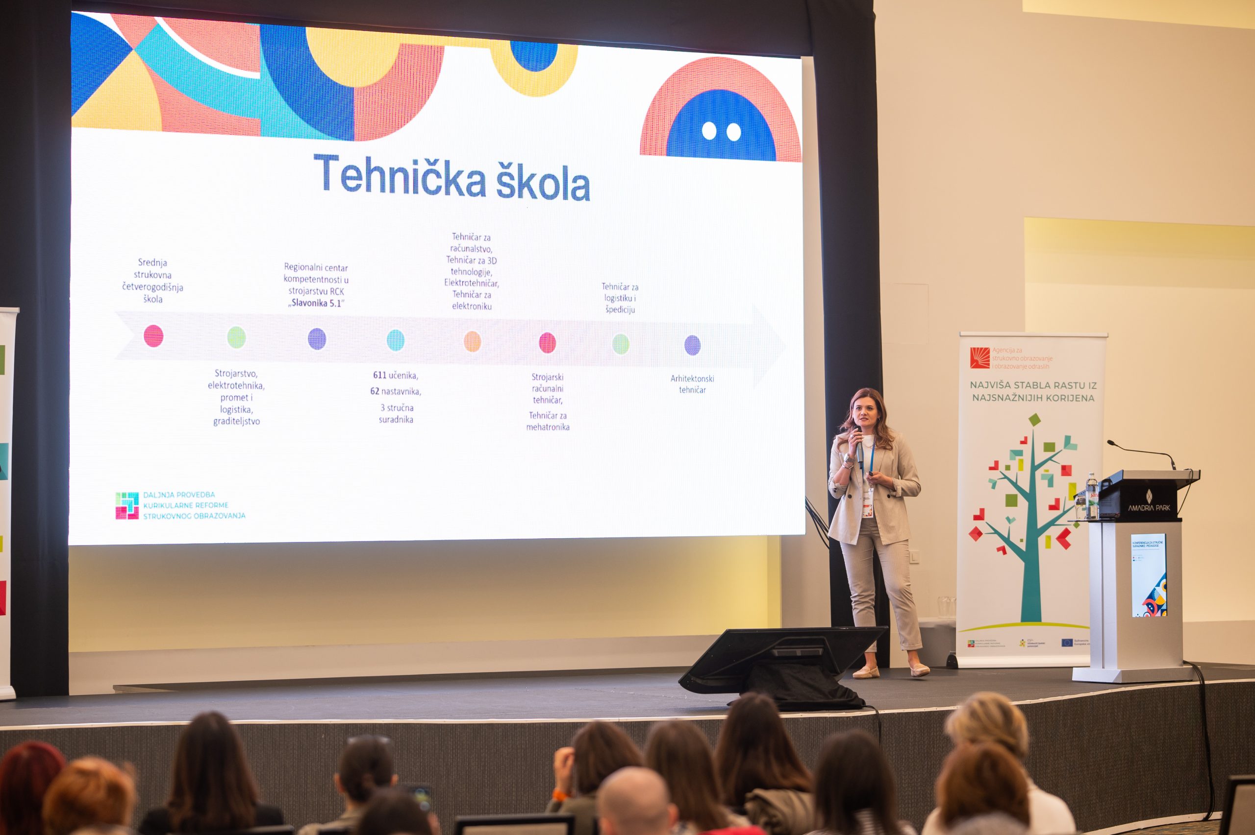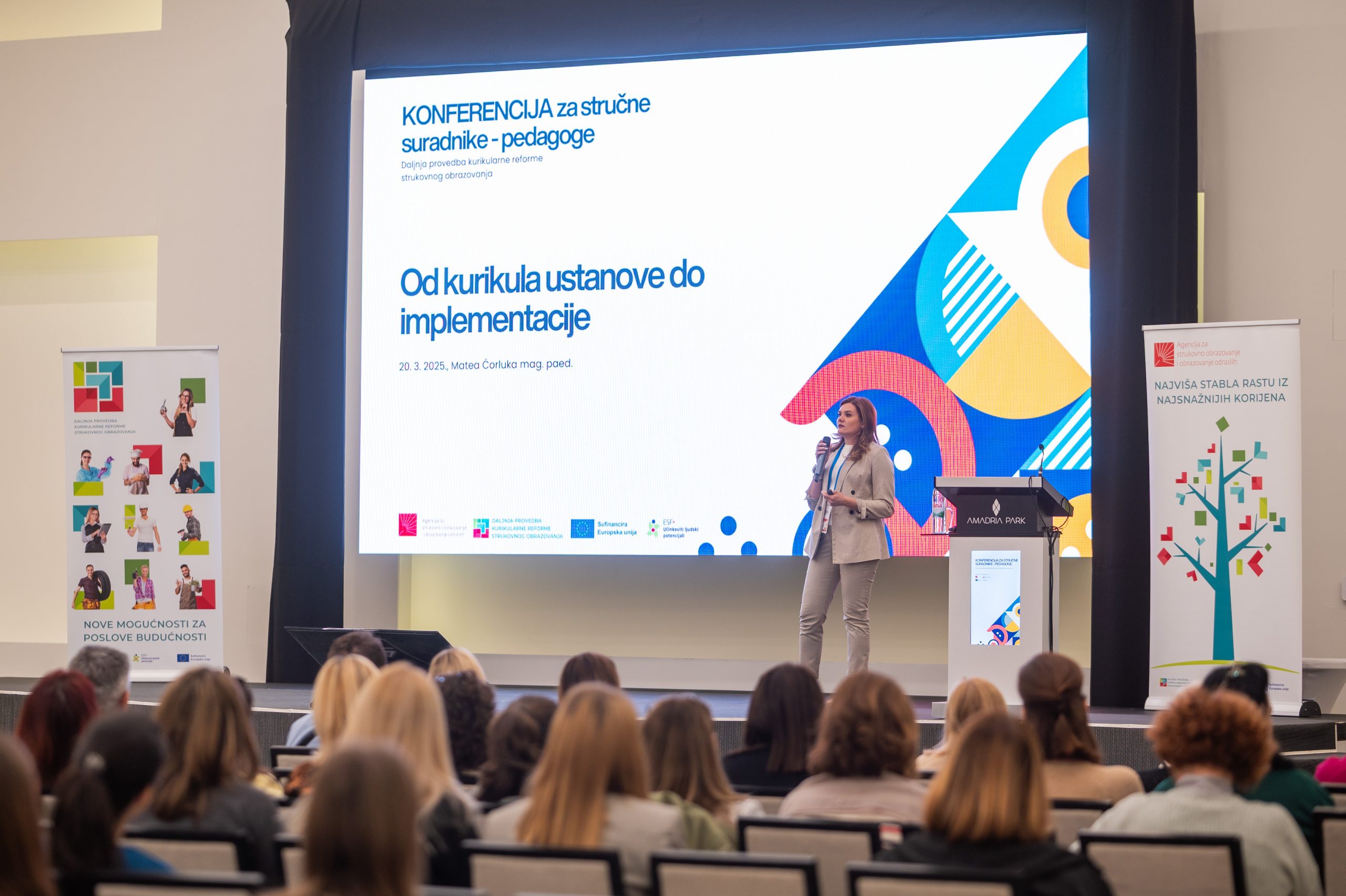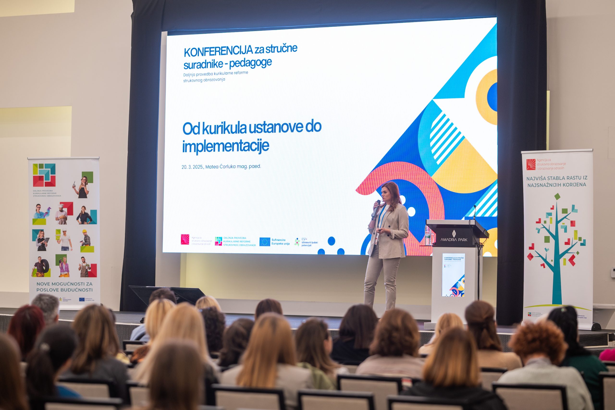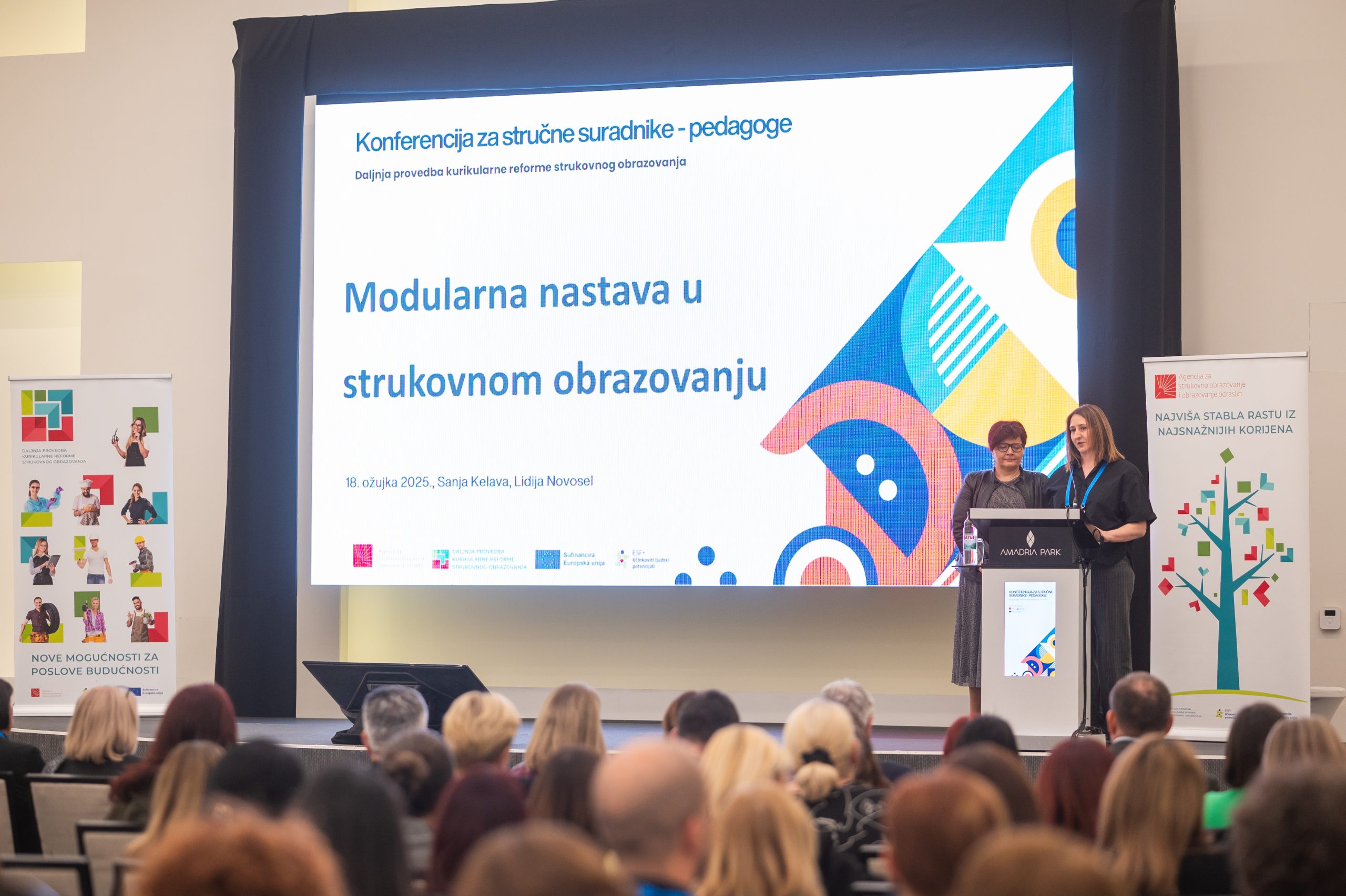 The Agency for Vocational Education and Training and Adult Education (ASOO) organized, for the first time, a gathering for professional associates – pedagogues of vocational schools in the Republic of Croatia, from 18 March to 20 March 2025, at the Amadria Park Hotels in Šibenik. With this event, the importance and role of professional associates – pedagogues in the upcoming changes in the vocational education system through the introduction of modular vocational curricula were emphasized. The new modular approach to instruction will bring changes not only in the planning, organization, and execution of the teaching and learning process, but also in the approach to planning, assessment, and support for students and teachers. Professional associates – pedagogues can make a significant contribution to designing support for students and teachers in adapting to different planning of the teaching and learning process and methods of work. The conference participants had the opportunity to exchange experiences with colleagues from other schools, discuss challenges in the implementation of modular instruction, and gain insight into different approaches and examples of good practice. Over the three days of the event, more than 200 professional associates gathered, and a total of six plenary presentations and three workshops were held, led by the Agency’s sectoral advisors. asoo.hr