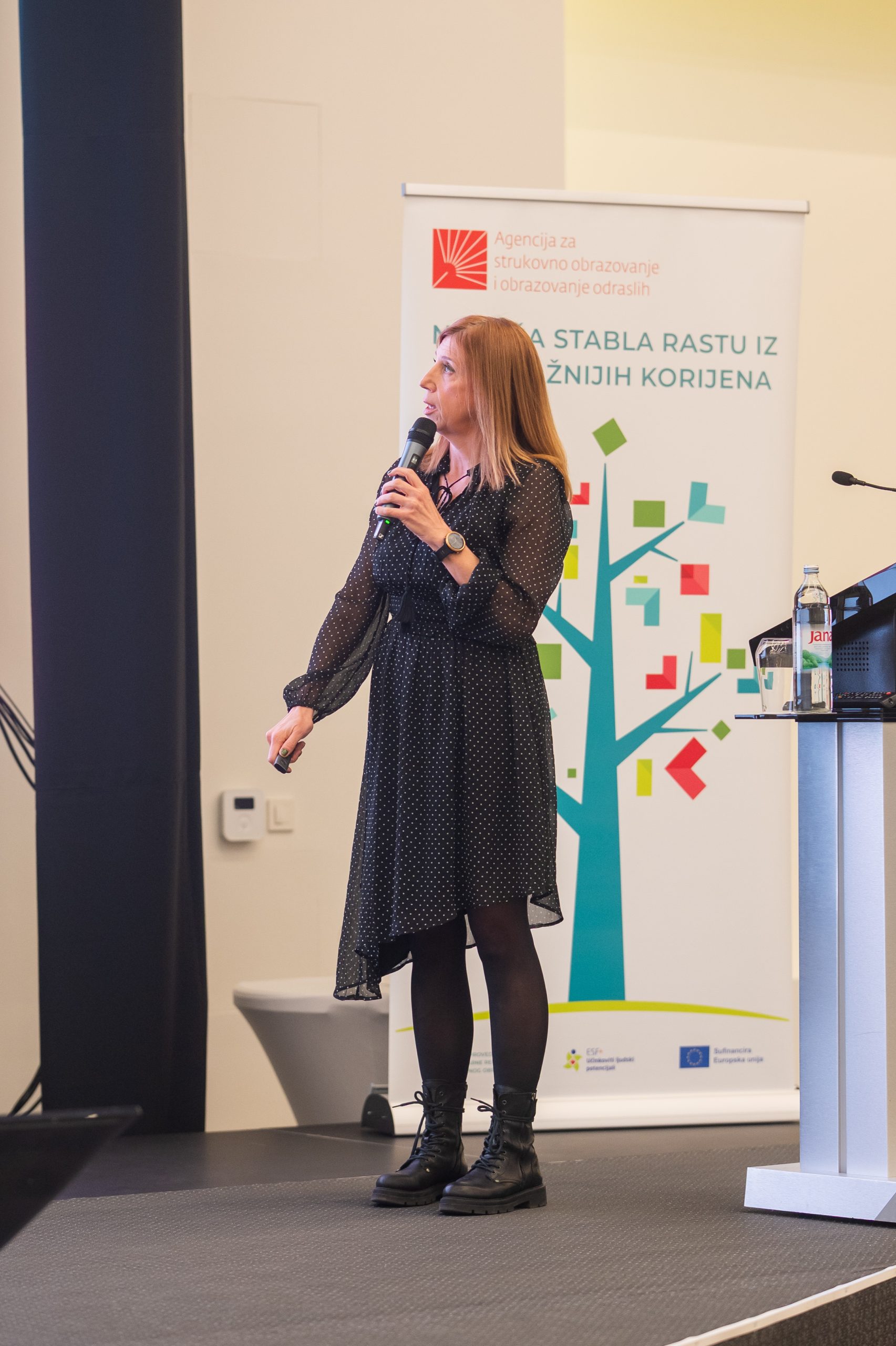 In her presentation, pedagogue Karmen Bračić Bunčec discussed the difference between the school curriculum and the institutional curriculum in the context of vocational education. The school curriculum is based on the national curriculum and includes long-term and short-term plans, while the institutional curriculum elaborates in detail the educational process specific to a particular school, including the school’s identity, elective modules, and cooperation with the economy. Using the example of the Secondary School Zabok, the steps in developing the institutional curriculum were demonstrated, the adaptation of vocational education to market needs, and the connection between general education and vocational subjects through project activities. Challenges were highlighted, such as adapting to changes and ensuring quality, as well as the advantages of flexibility and school recognition through specific programs.